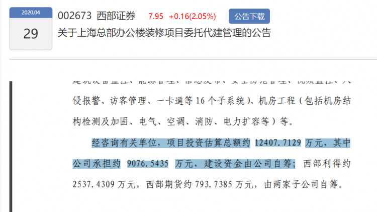 过往三年连续大幅计提资产减值逾15亿元的西部证券,将斥资1.24亿元为上海总部办公楼“装点门面”,一举将一季度归母净利润花掉一半。