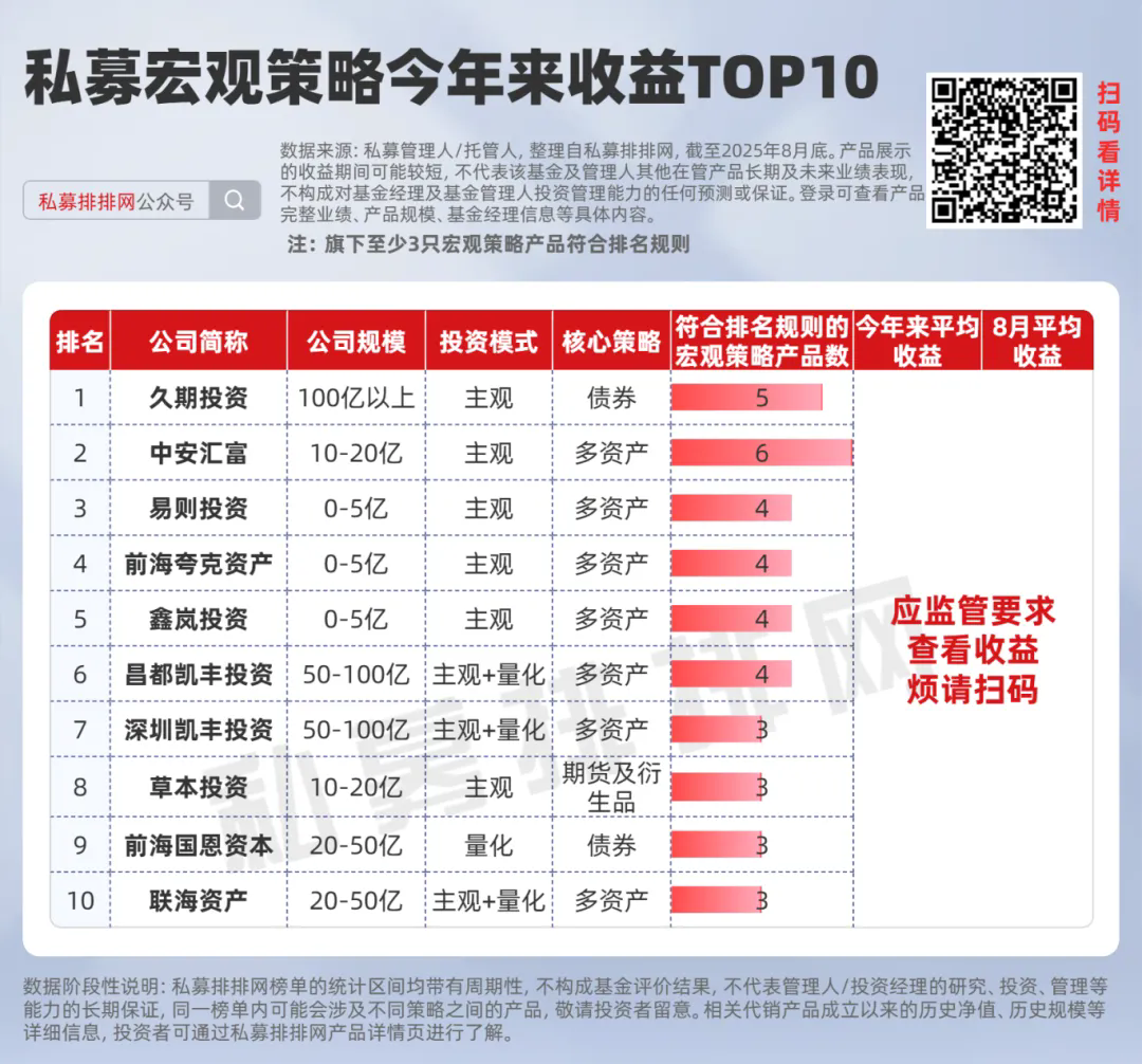宏观策略产品前三季度收益TOP3 - 私募排排网