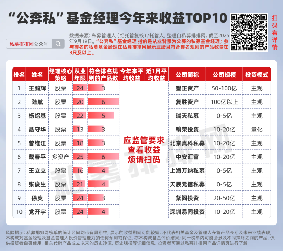 “公奔私”基金经理收益TOP10 - 私募排排网